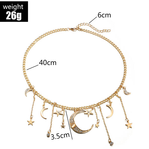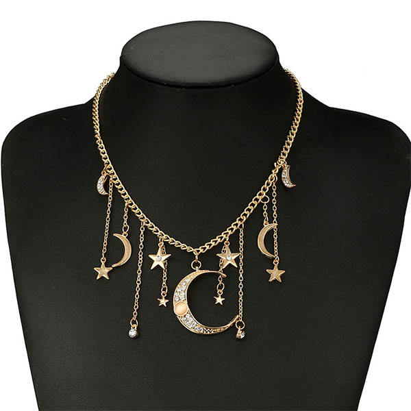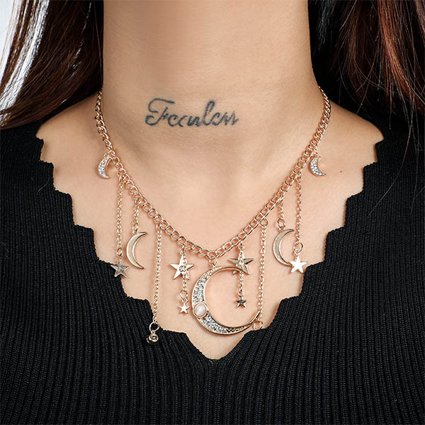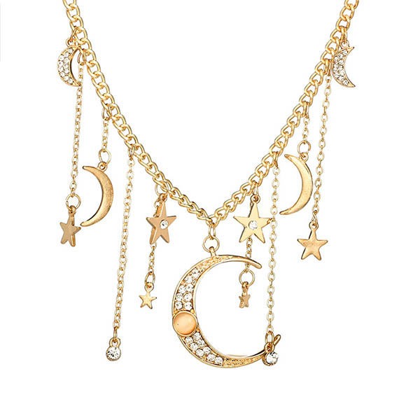 When wearing some off-shoulder or strapless outfits,adding this necklace would make you look more beautiful and charming. It is decorated with crescent and star pendants,romantic yet chic. So why not boost your charm with the help of this little item?