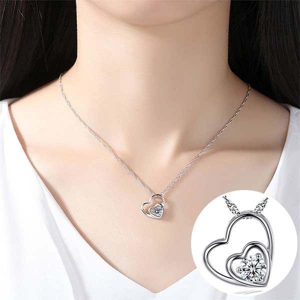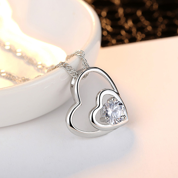 Wanna make your simple and dull dress up look more charming and beautiful? Then we suggest you adding this necklace. The dual-heart pendant and rhinestone inlaid design make this piece look so shinning and attractive. Add it to your accessory box!