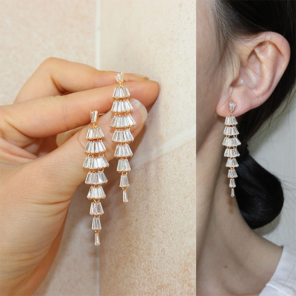 Boost your beautiful charms with the help of these earrings. The rhinestone inlaid fan-shaped design makes it look more shinning,distinctive and attractive. If you wanna a more beautiful daily look,you can consider adding these earrings.