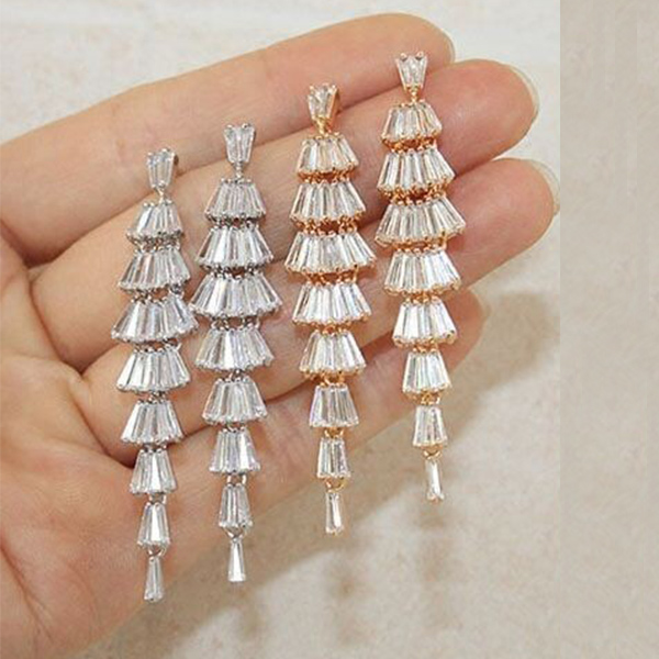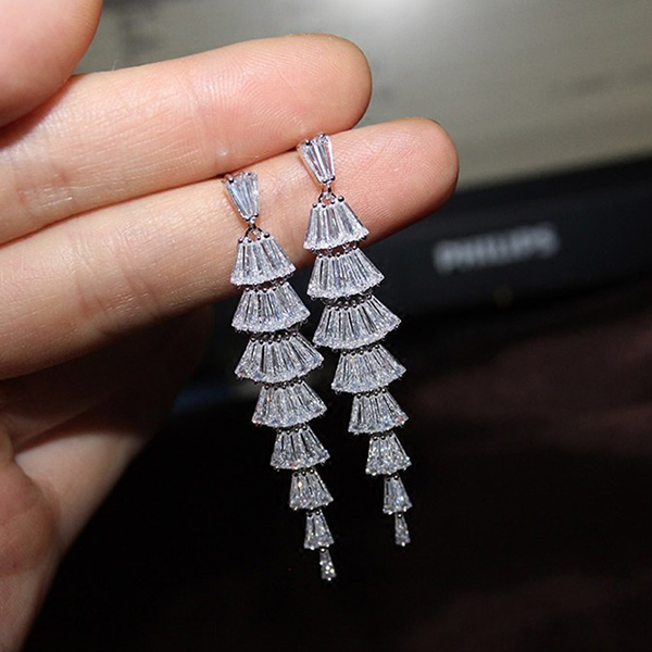 Fashion Rhinestone Inlaid Fah-shaped Tassel Earrings