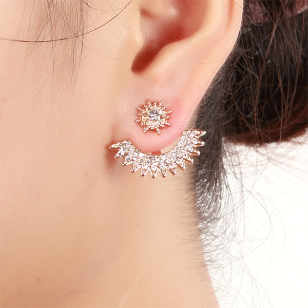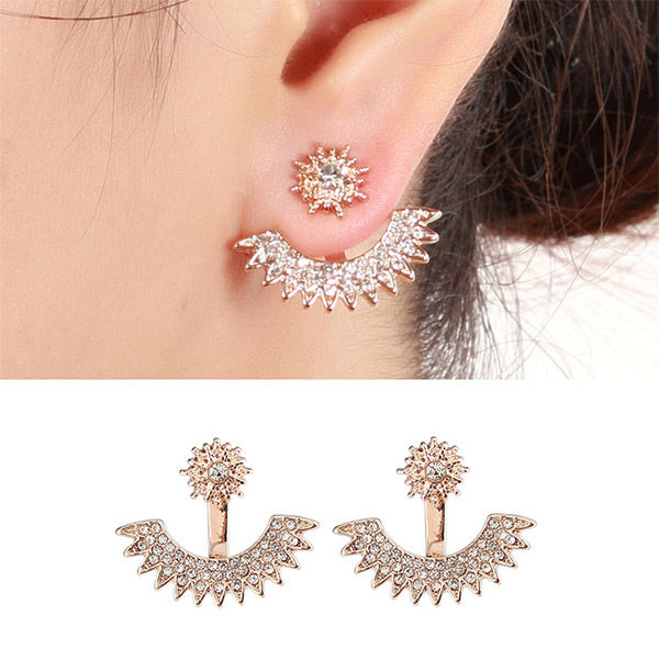 Your simple and dull dress up can be enriched once you wear this pair of stud earrings. Fan-shaped design,inlaid with rhinestone details,simple but shinning and attractive. It is a perfect addition for a beautiful daily look.