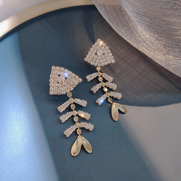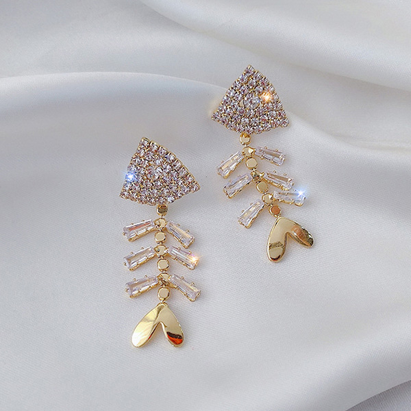 Finish a more shining style with the help of this pair of stud earrings. Fish-tone shape design,inlaid with rhinestone details,chic,unique and attractive. So why not wear them to start your wonderful day?