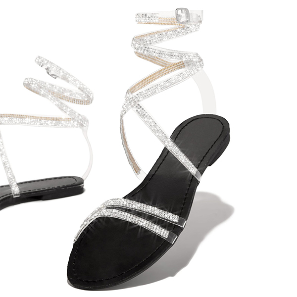 Fashion Rhinestone Inlaid Flat Heel Round Toe Lace-up Sandals