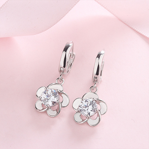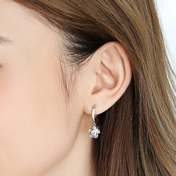 This pair of earrings is decorated with a flower pendant,inlaid with rhinestone details,sweet and stylish. It is a perfect addition for a stylish and charming daily look.