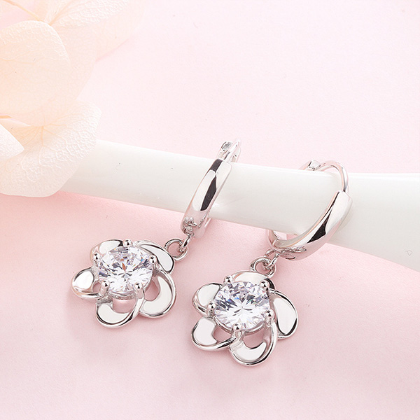 Fashion Rhinestone Inlaid Flower Pendant Earrings