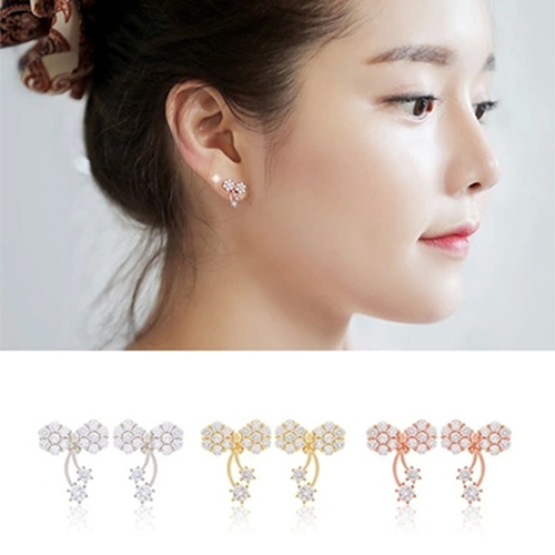 Infuse a sense of daytime glamour into your ensemble with this pair of stud earrings. Flower shaped design,inlaid with rhinestone,