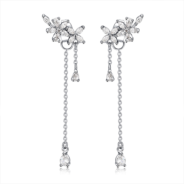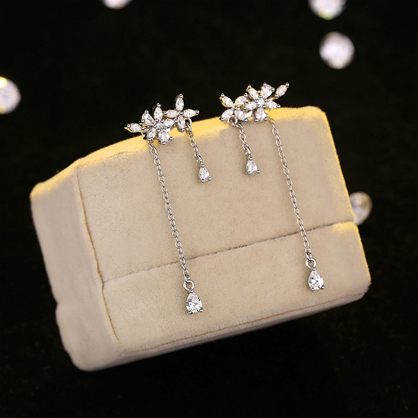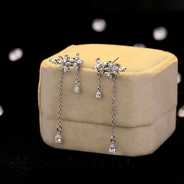 A perfect addition of a charming look,this pair of earrings is worth to arouse your attention. The rhinestone flower and long tassel design make it look so sweet and charming. Enrich your accessory box with these pieces.