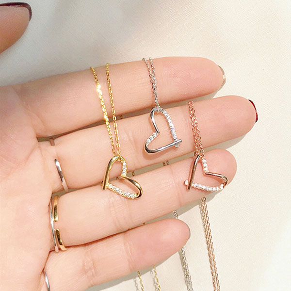 Fashion Rhinestone Inlaid Hear Pendant Necklace