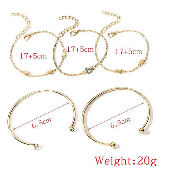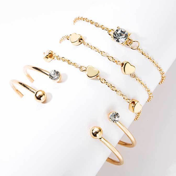 Fashion Rhinestone Inlaid Heart Bracelet Set 5 pcs/Set