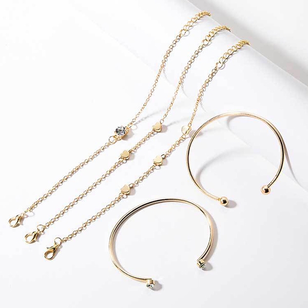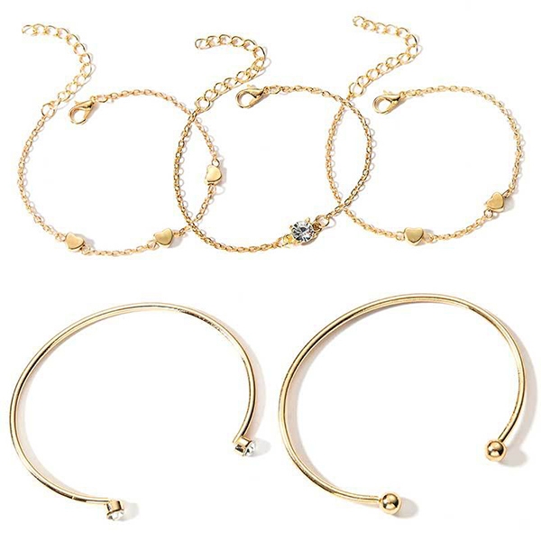 This bracelet set consists of 5 pieces bracelets,coming with a classic yet stylish gold tone,