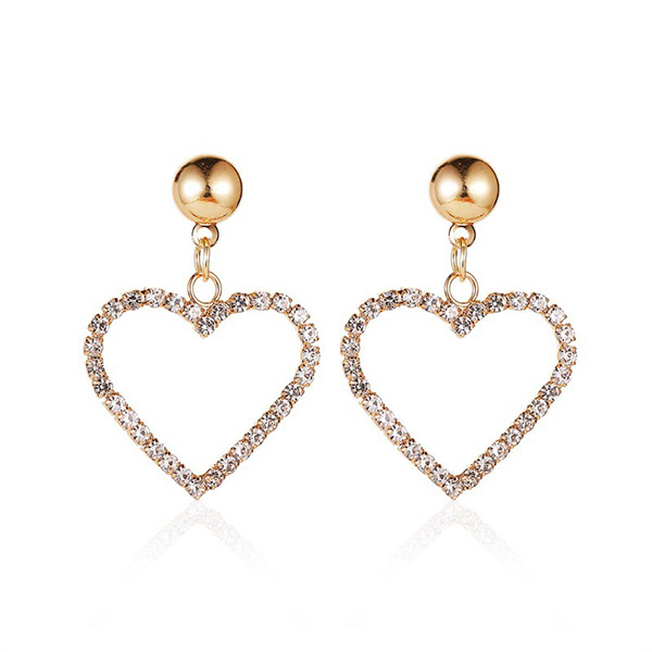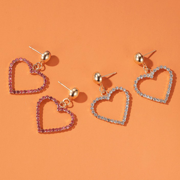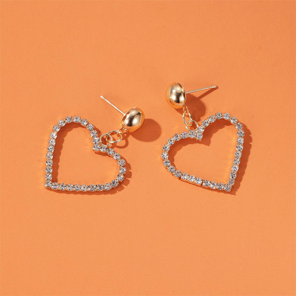 Add a touch of sweet and stylish vibes to your daily look with this pair of earrings. The heart shape and rhinestone details make it look so attractive and shinning. Like them? Then add them to your accessory box!