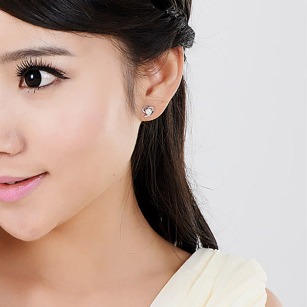 Finish a more shining look by adding this pair of stud earrings. Heart shaped design,decorated with rhinestone details,chic,sweet and romantic. So why not embellish your ears with these pieces?