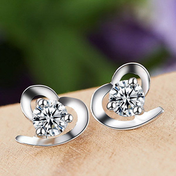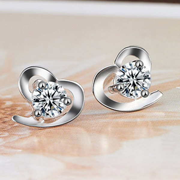 Fashion Rhinestone Inlaid Heart Shaped Stud Earrings