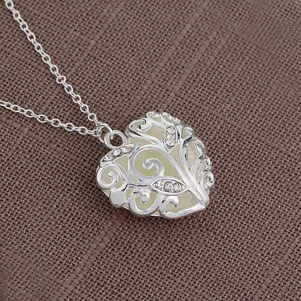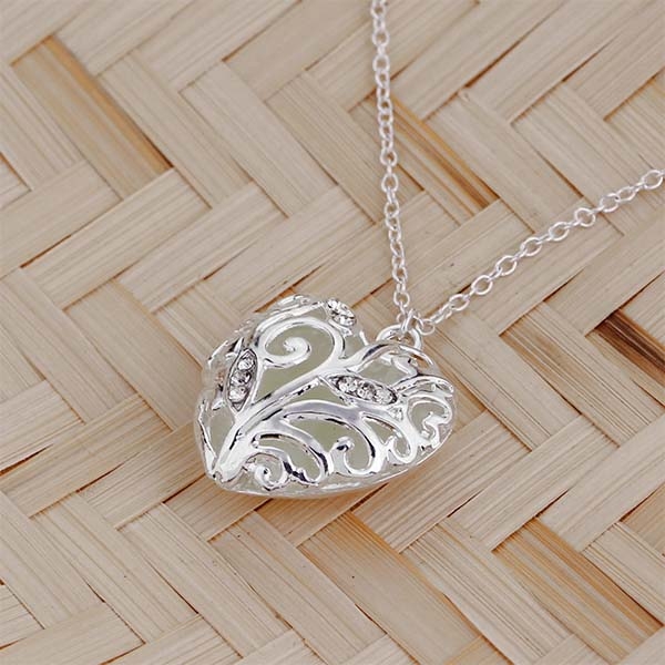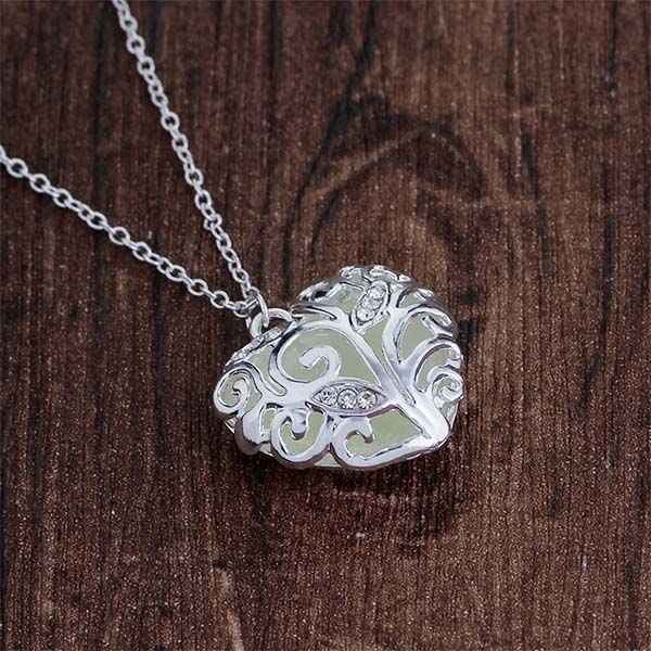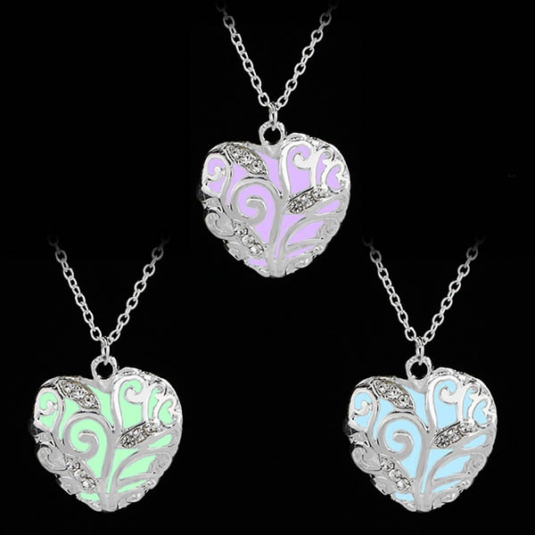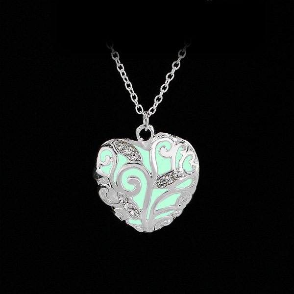 Fashion Rhinestone Inlaid Hollow Out Heart Pendant Luminous Necklace