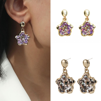 Fashion Rhinestone Inlaid Irregular Pentagram Shaped Earrings