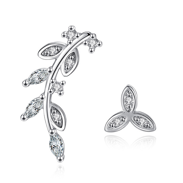 Fashion Rhinestone Inlaid Leaf Shaped Asymmetric Stud Earrings