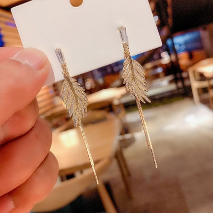 Add some endless charm to your overall look with this pair of earrings. The leaf shape and rhinestone inlaid details make it look so shinning and attractive. For a more delicate and charming daily look,these earrings can be the perfect additions.