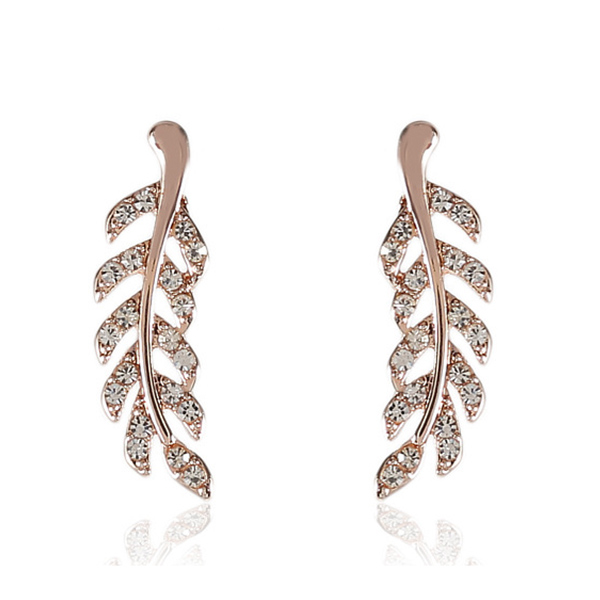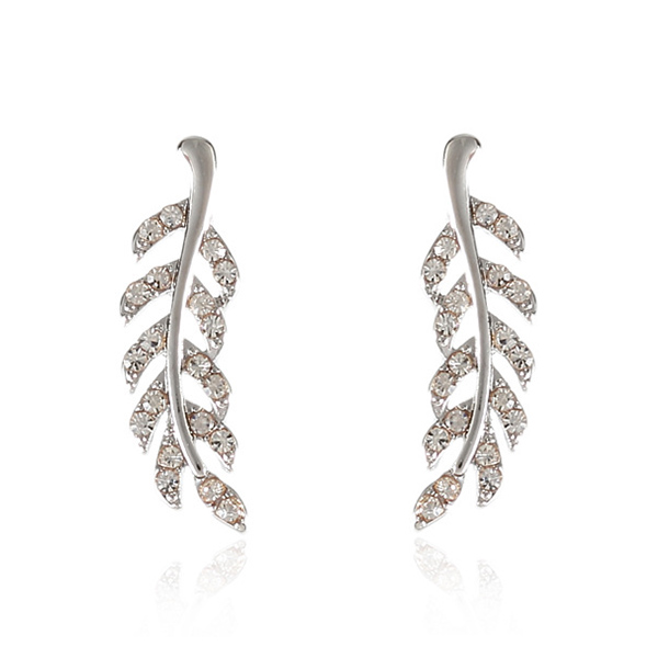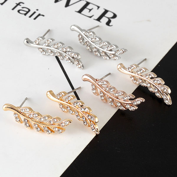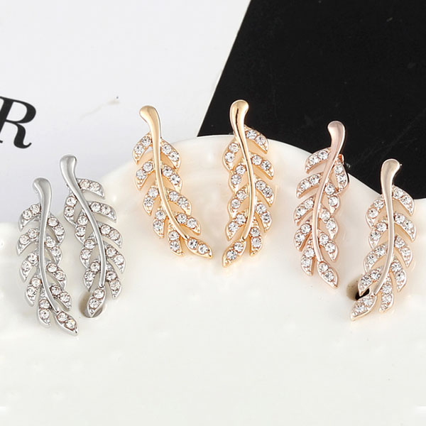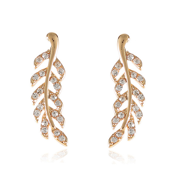 Fashion Rhinestone Inlaid Leaf Shaped Stud Earrings