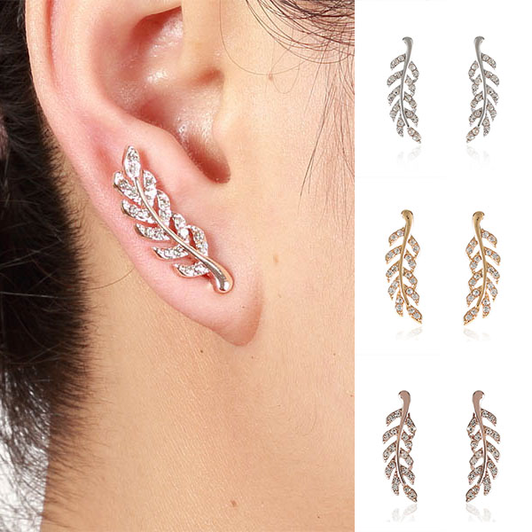 Make your daily look more stylish and charming with the help of this pair of stud earrings. Leaf shaped design,inlaid with rhinestone details,chic and shinning. You can embellish your ears as well as enrich your overall dress up with these pieces.
