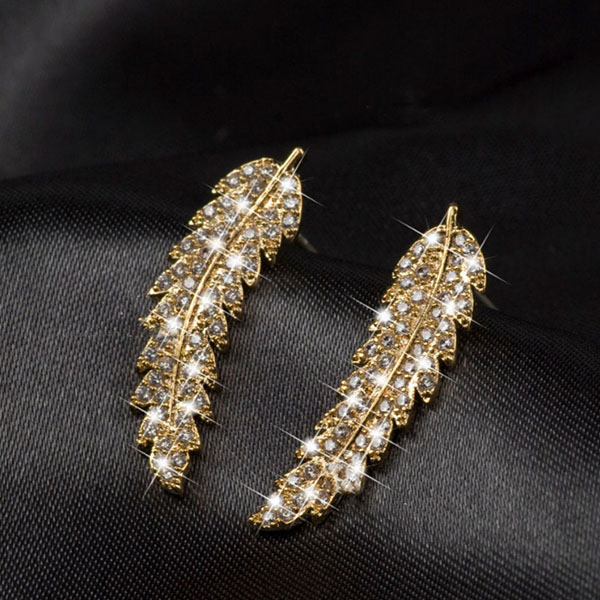 Fashion Rhinestone Inlaid Leaf Shaped Stud Earrings