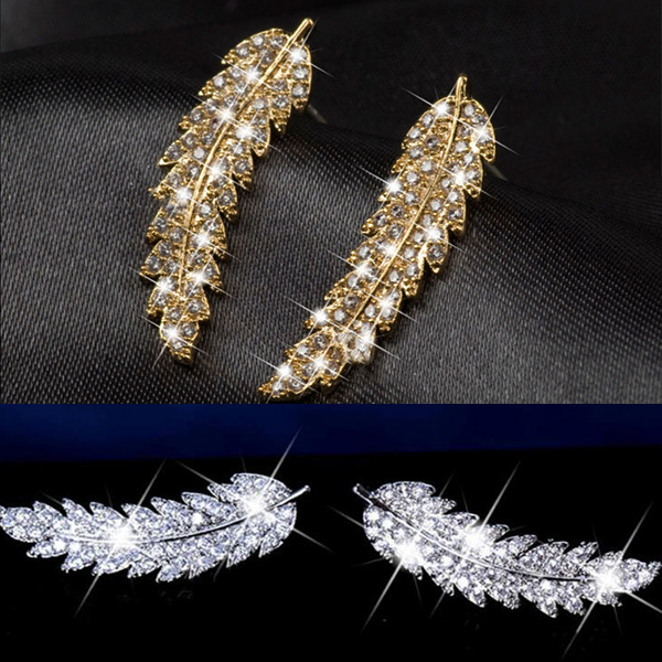 These stud earrings can add endless style to your everyday attire! Leaf shaped design,inlaid with rhinestone details,shinning and attractive. It is a perfect addition for a stylish and beautiful look!