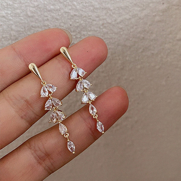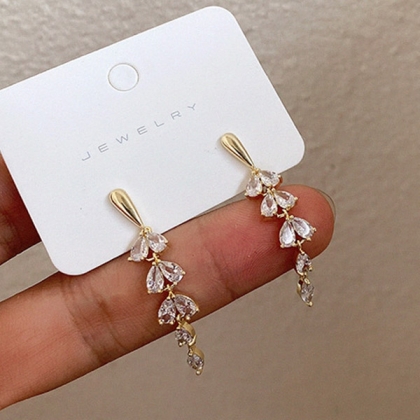 You can finish a more shinning look by wearing this pair of earrings. The leaf tassel and rhinestone details make it look so attractive. Finish a delicate dress up and start your wonderful day from this pair of earrings.