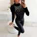 When you go out with this t-shirt,you are sure to grab more attention. Crafted from soft and breathable fabric,with long sleeve,mock neck and a fit silhouette,this t-shirt can ensure you a comfortable day. And the rhinestone details will make it look more shinning. Try to match with your favourite pants to start your wonderful day.