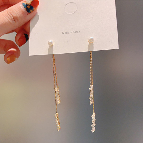 You can boost your charm with these earrings. This pair of long tassel earrings is decorated with rhinestone details,which will make you look more shinning and attractive. It can be a perfect addition for a charming daily look.