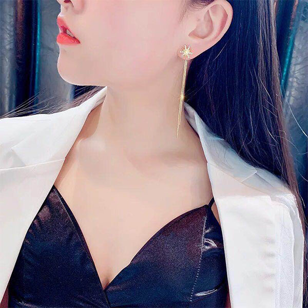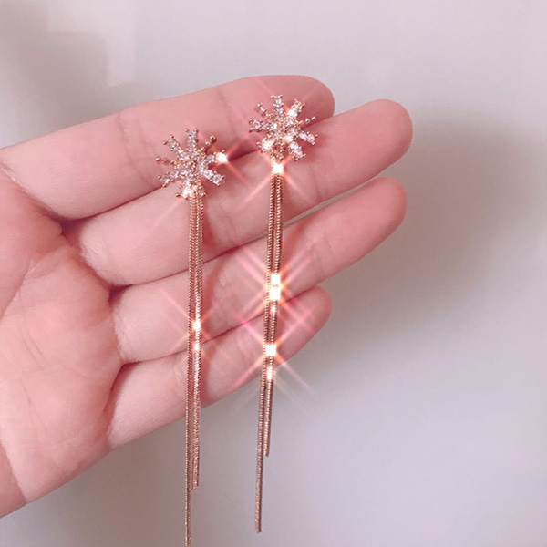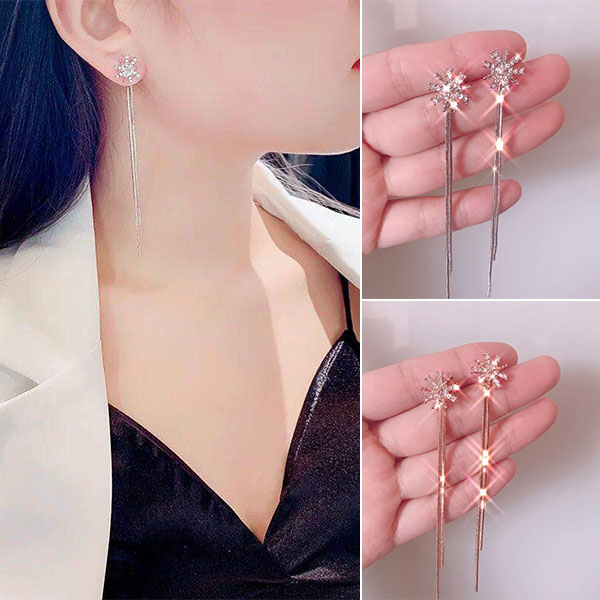 Wanna your party look more beautiful and charming? Then we suggest you adding this pair of earrings. The long tassel and rhinestone inlaid snowflake design make them look so shinning and attractive. Enrich your accessory box with these pieces.
