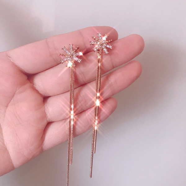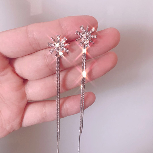 Fashion Rhinestone Inlaid Long Tassel Snowflake Earrings