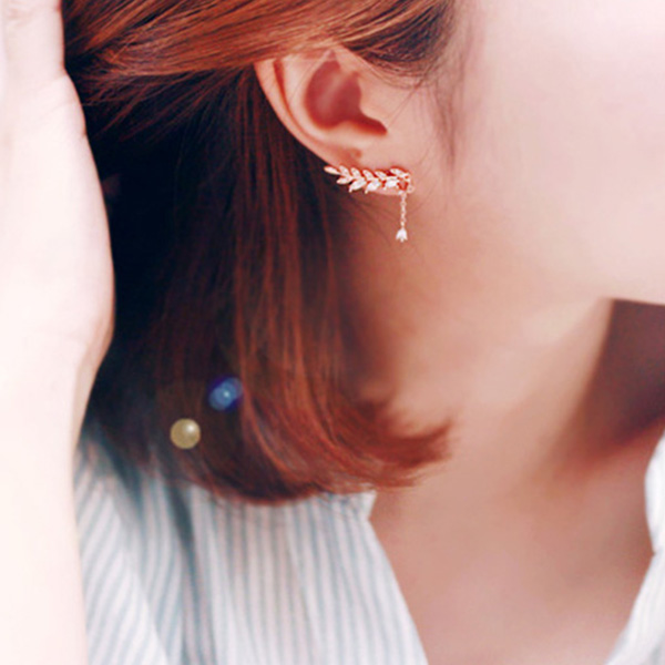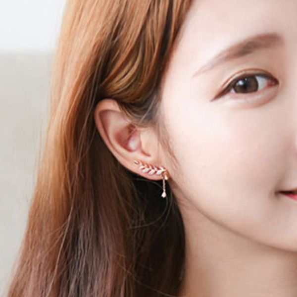 This pair of asymmetric stud earrings is inlaid with rhinestone details,shinning and attractive. Olive leaf shaped design makes it look so chic and unique. When you wear them,your entire charm can have a boost.