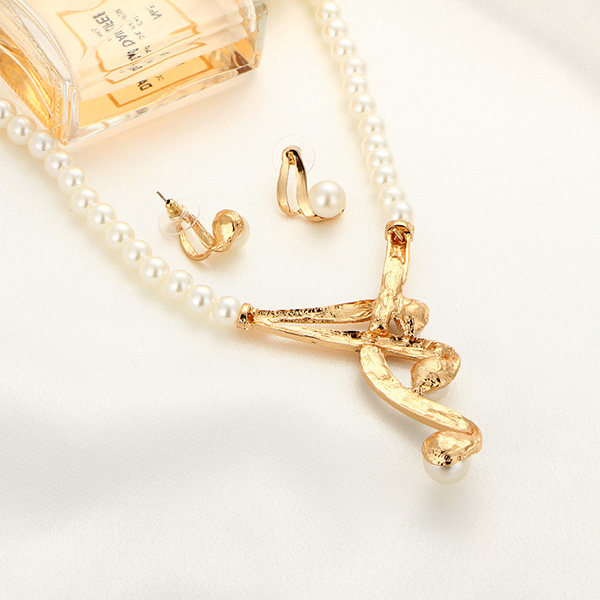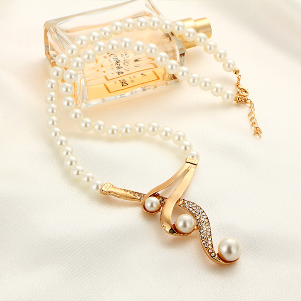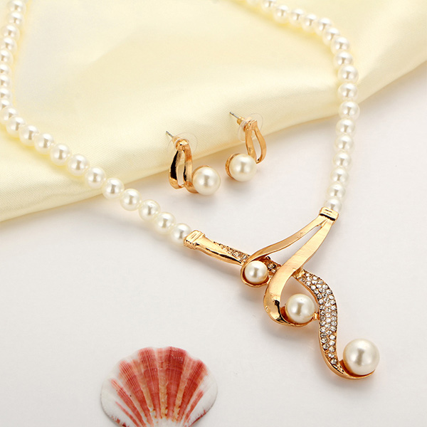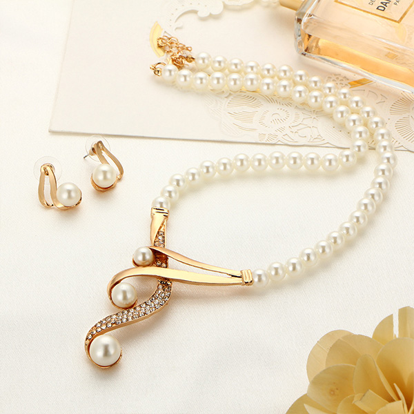 Fashion Rhinestone Inlaid Pearl Necklace + Stud Earrings Accessory Set