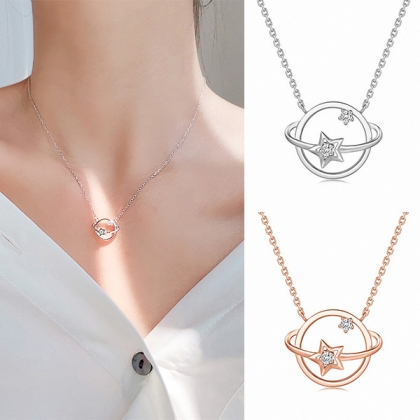 Fashion Rhinestone Inlaid Planet Pendant Necklace