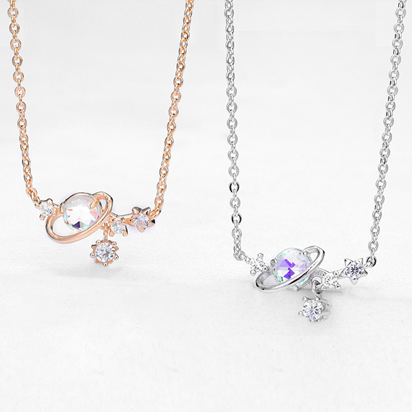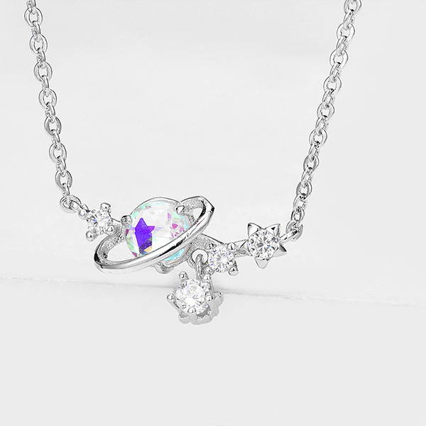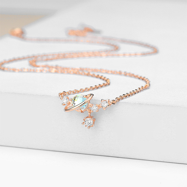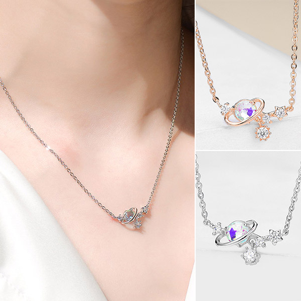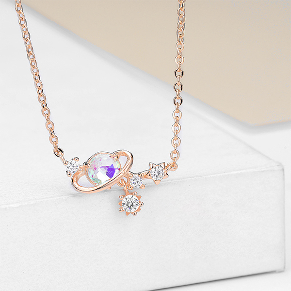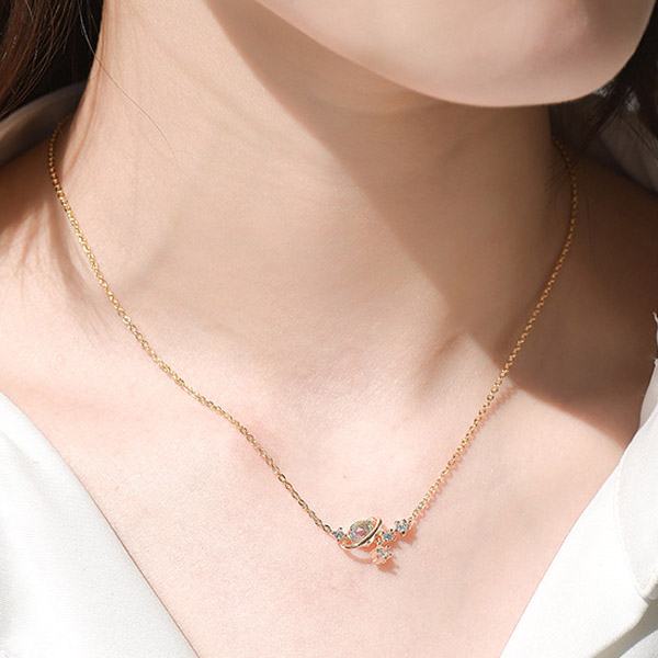 Add some endless charm to your overall look with this necklace. The planet pendant and rhinestone inlaid details make it look so shinning and attractive. It can easily be the finishing touch to your dress up.