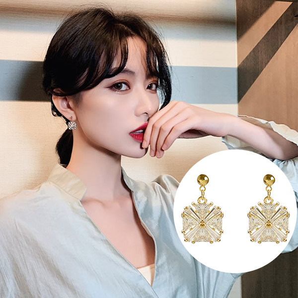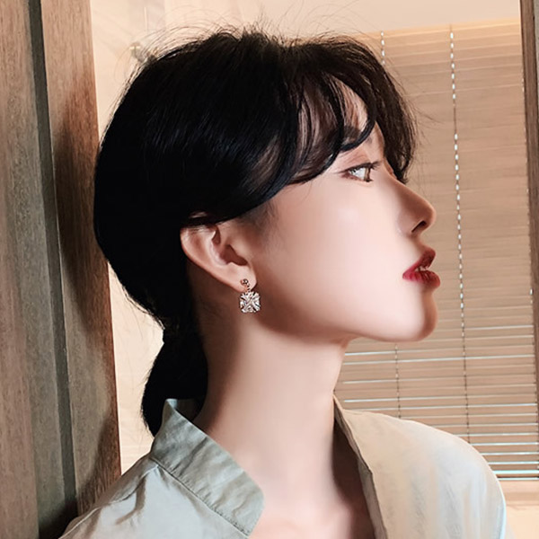 This pair of earrings can add endless style to your everyday attire! The rhinestone inlaid details and square pendant make it look simple,delicate and shinning. It is a perfect addition for a charming daily look.