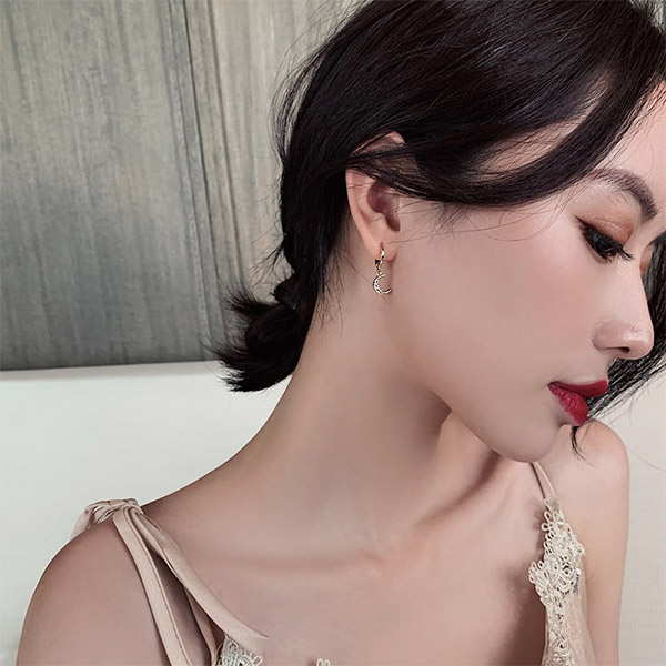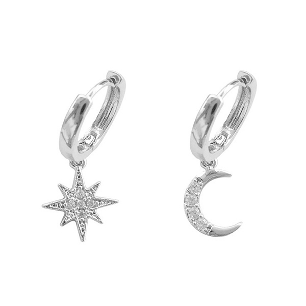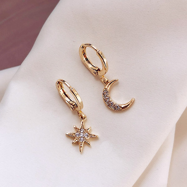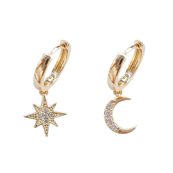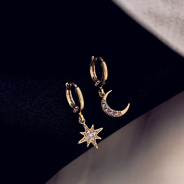 Finish a more shinning style by wearing this pair of earrings. Designed with star,crescent shaped pendant and inlaid with rhinestone details,this pair of asymmetric earrings can help boost your entire charm.
