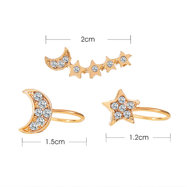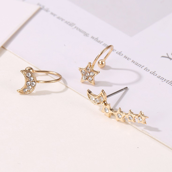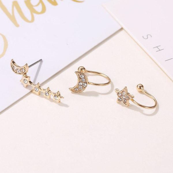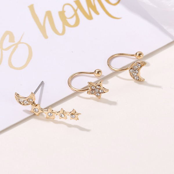 Consists of 3 pieces different stud earrings like star shape and crescent shape,this stud earring set can lend you a dash of chic,stylish and romantic vibes. So why not embellish your ears with these pieces?