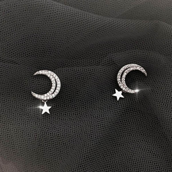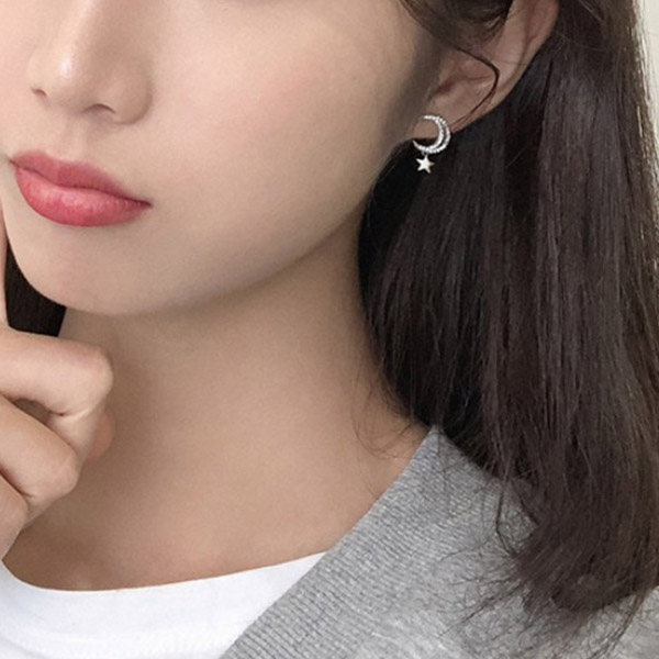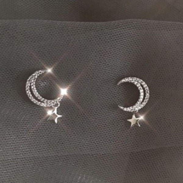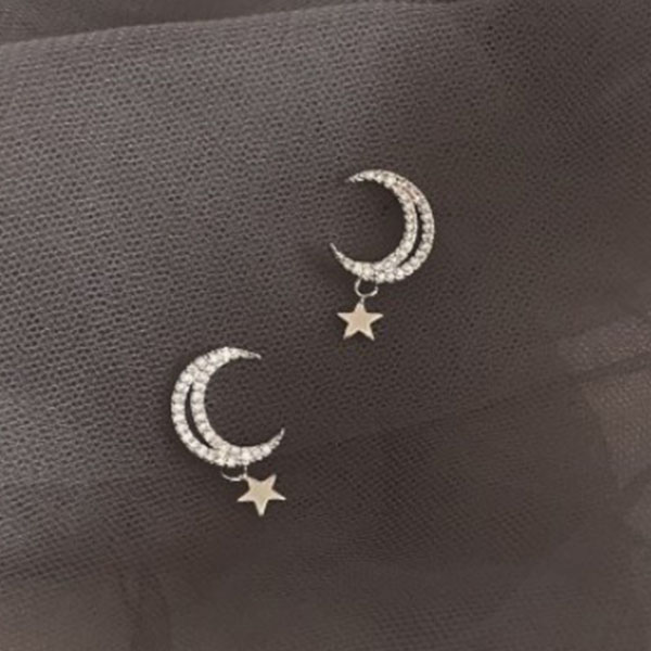 These stud earrings can add endless style to your everyday attire! Star and crescent shaped design make it look simple yet romantic,while the rhinestone details will make it look more shinning. Add them to your fashion accessories collection.