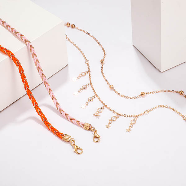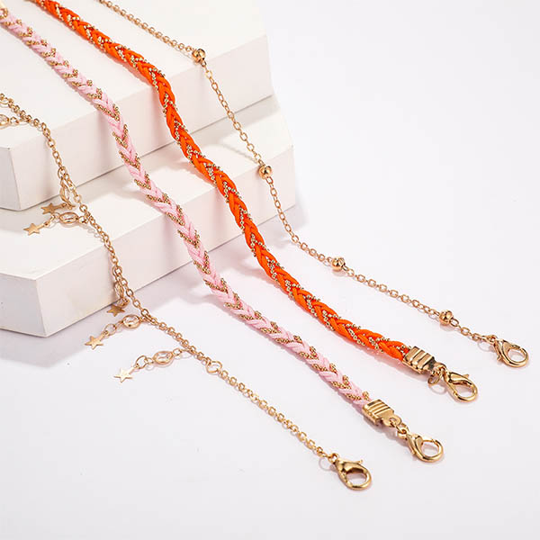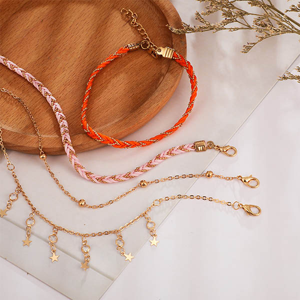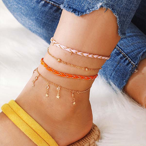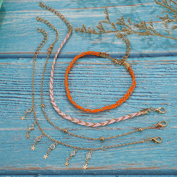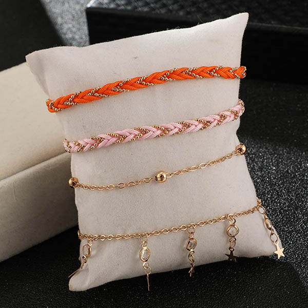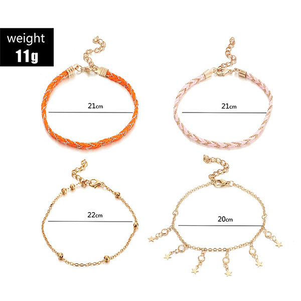 Fashion Rhinestone Inlaid Star Pendant Braided Anklet Set 4 pcs/Set