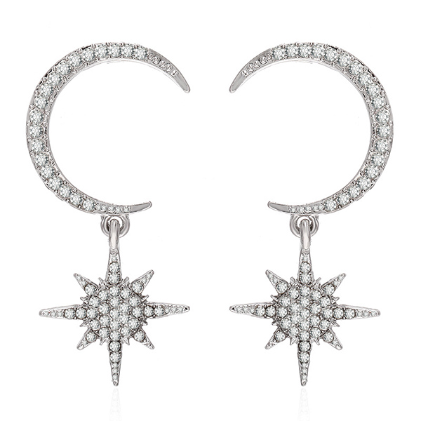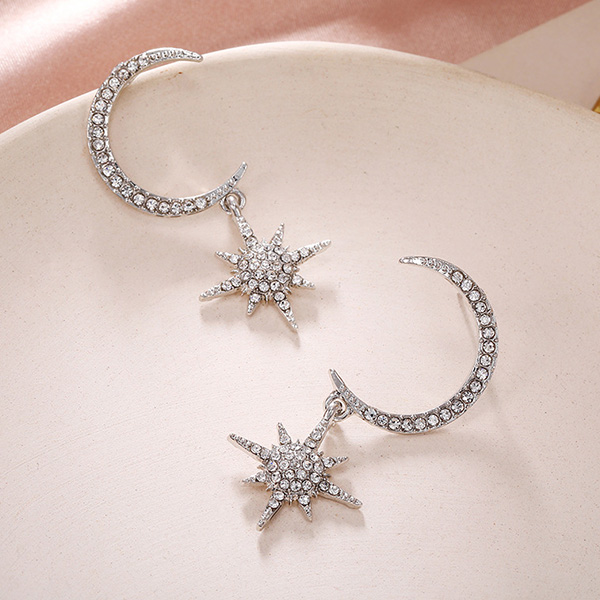 Let your daily appearance look more stylish and charming by adding these stud earrings. Crescent shaped design,decorated with star pendant and rhinestone details,shinning and attractive. It is a perfect addition for a beautiful look.