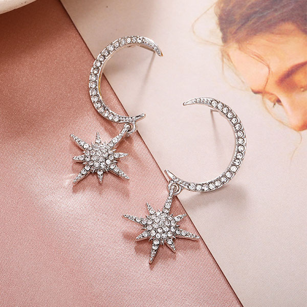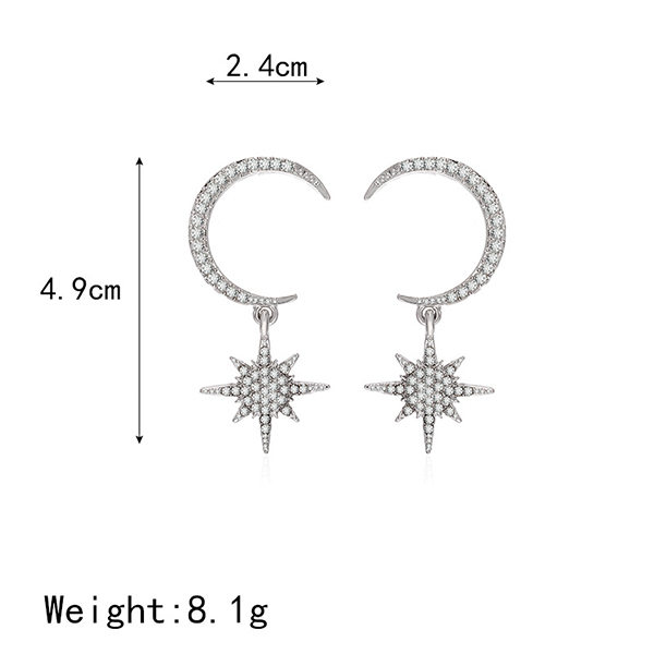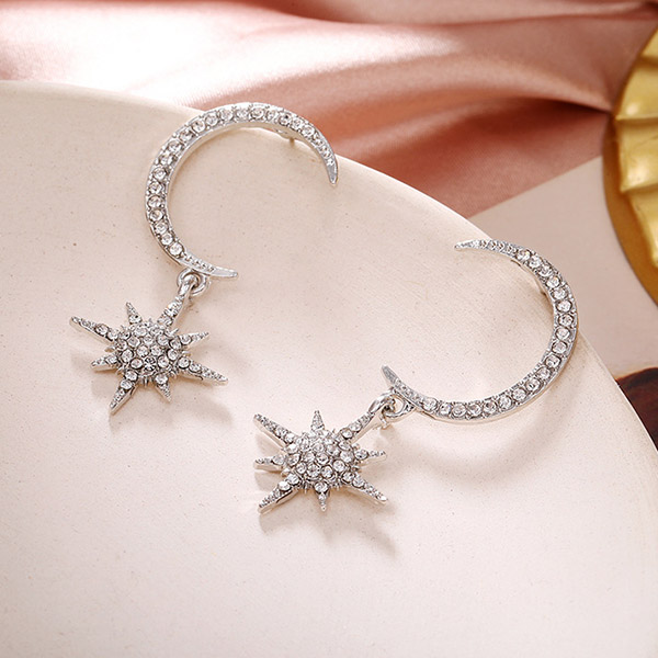 Fashion Rhinestone Inlaid Star Pendant Crescent Shaped Stud Earrings