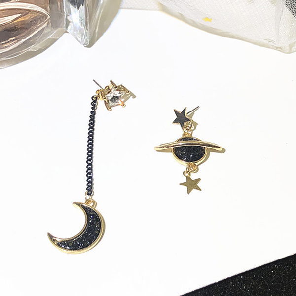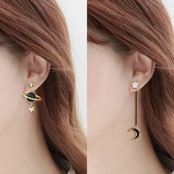 When you wanna make your overall dress up look more beautiful and charming,then you can consider adding this pair of asymmetric earrings. The star and planet shaped design make it look so stylish and distinctive. Add them to your accessory box!