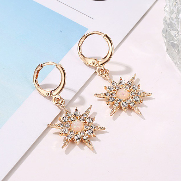 Fashion Rhinestone Inlaid Sunflower Pendant Earrings