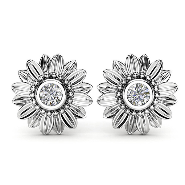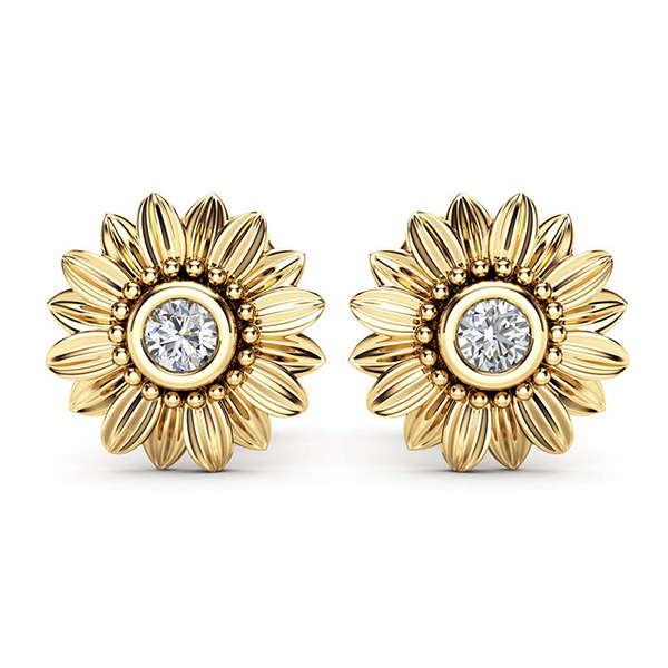 Fashion Rhinestone Inlaid Sunflower Shaped Stud Earrings