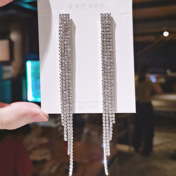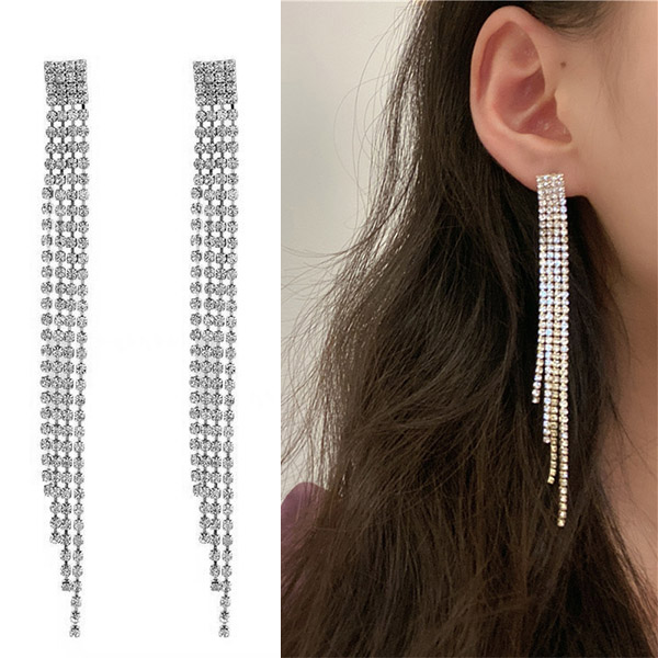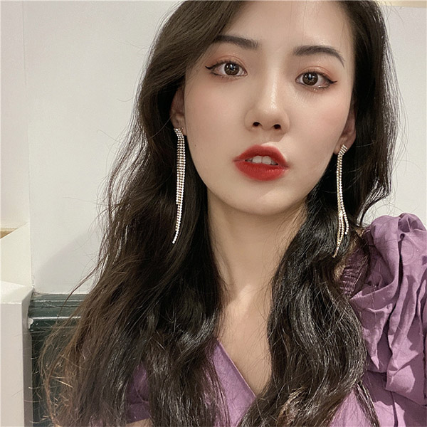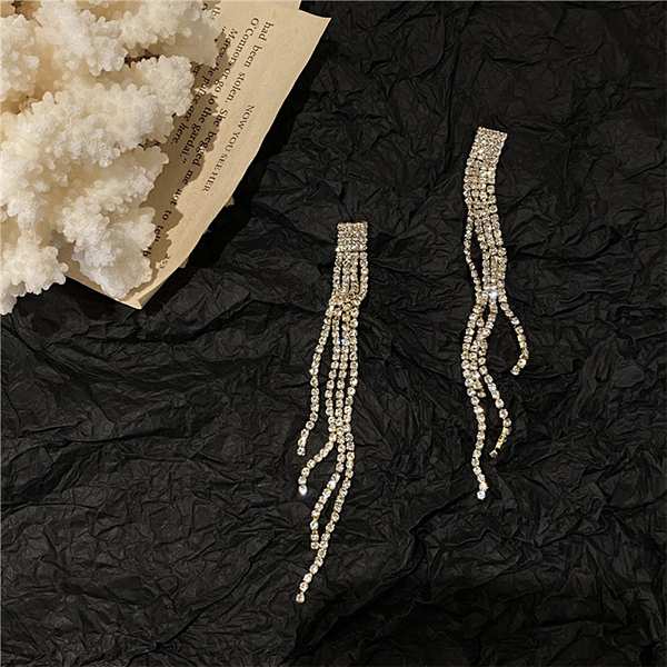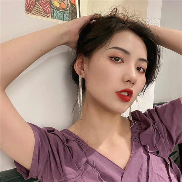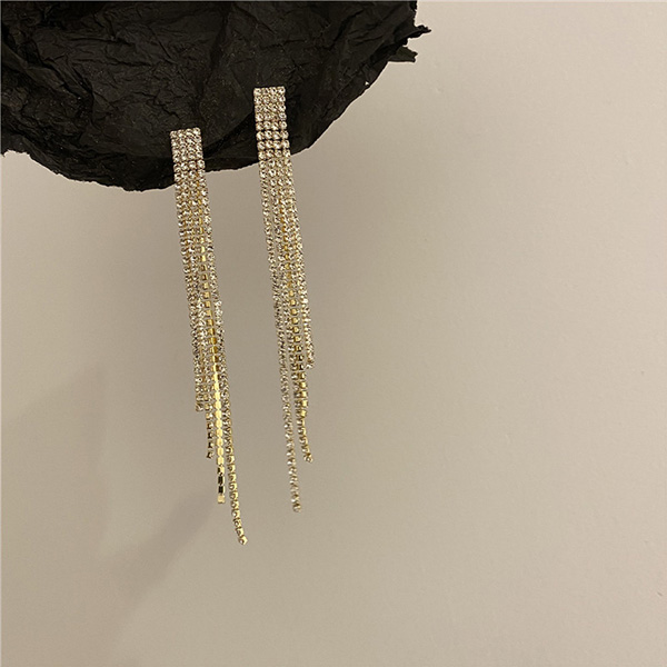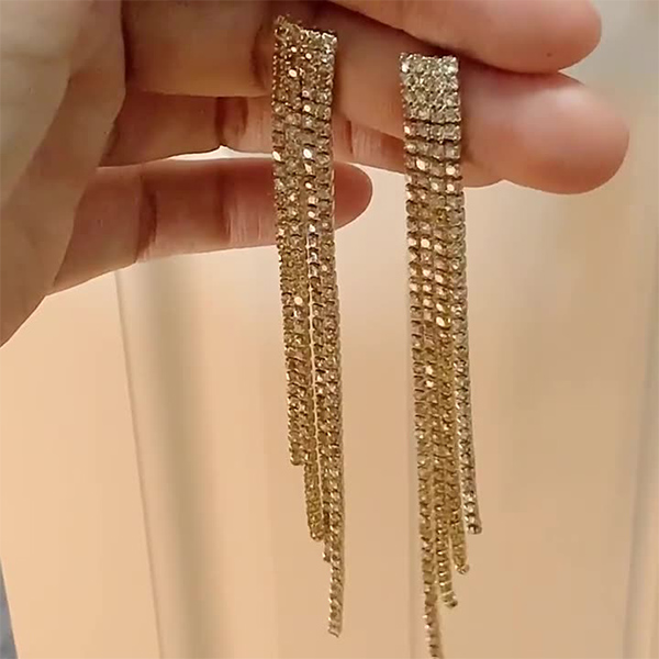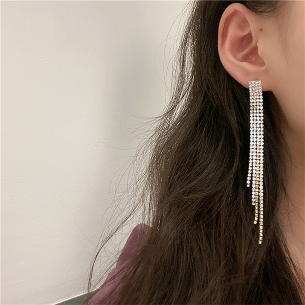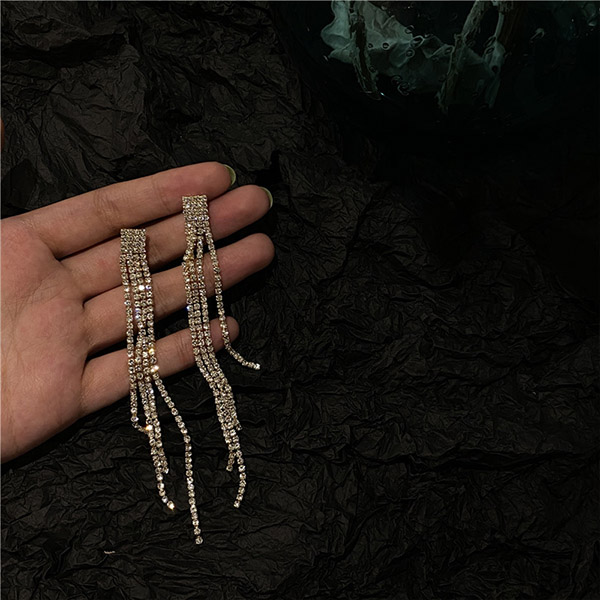 Make your daily appearance look more beautiful and charming with the help of this pair of tassel earrings. Inlaid with rhinestone details,which make it look more shinning and attractive. Your charm can have a boost when you wear them.