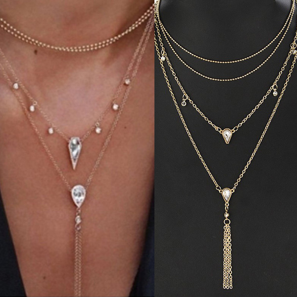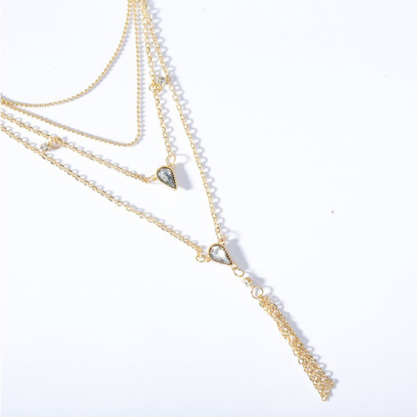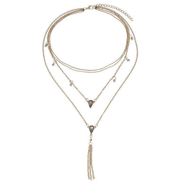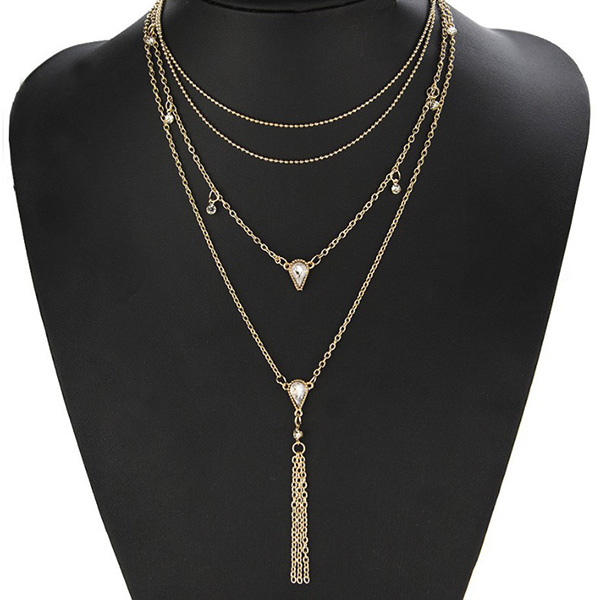 Ce collier de style à quatre couches est livré avec un ton doré classique mais élégant,