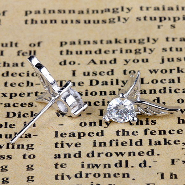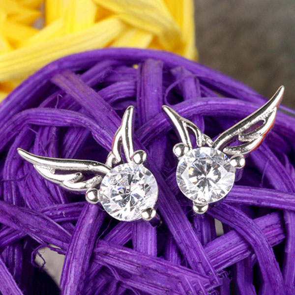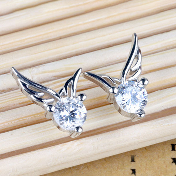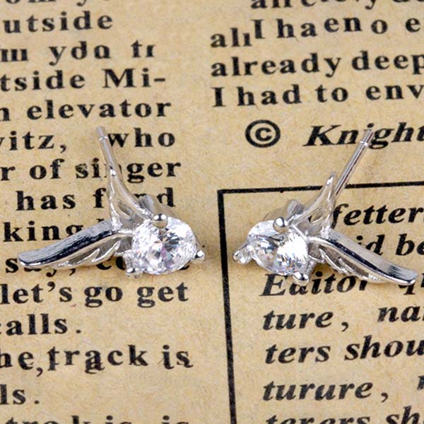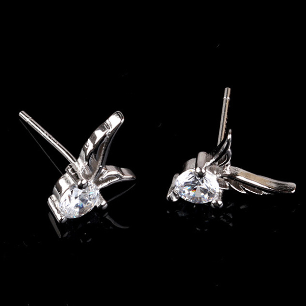 Fashion Rhinestone Inlaid Wing Shaped Stud Earrings