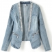 Fashion Rhinestone Long Sleeve Old-washed Denim Jacket