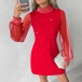 Look at this dress! The rhinestone embellishments add a sparkling and luxurious element, perfect for creating a chic and eye-catching outfit. The gauze spliced long sleeve detail adds a hint of sheer and adds a touch of sensuality to the dress. Wanna have a try?