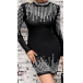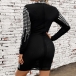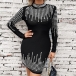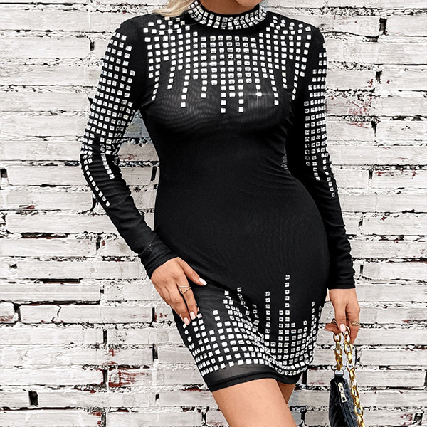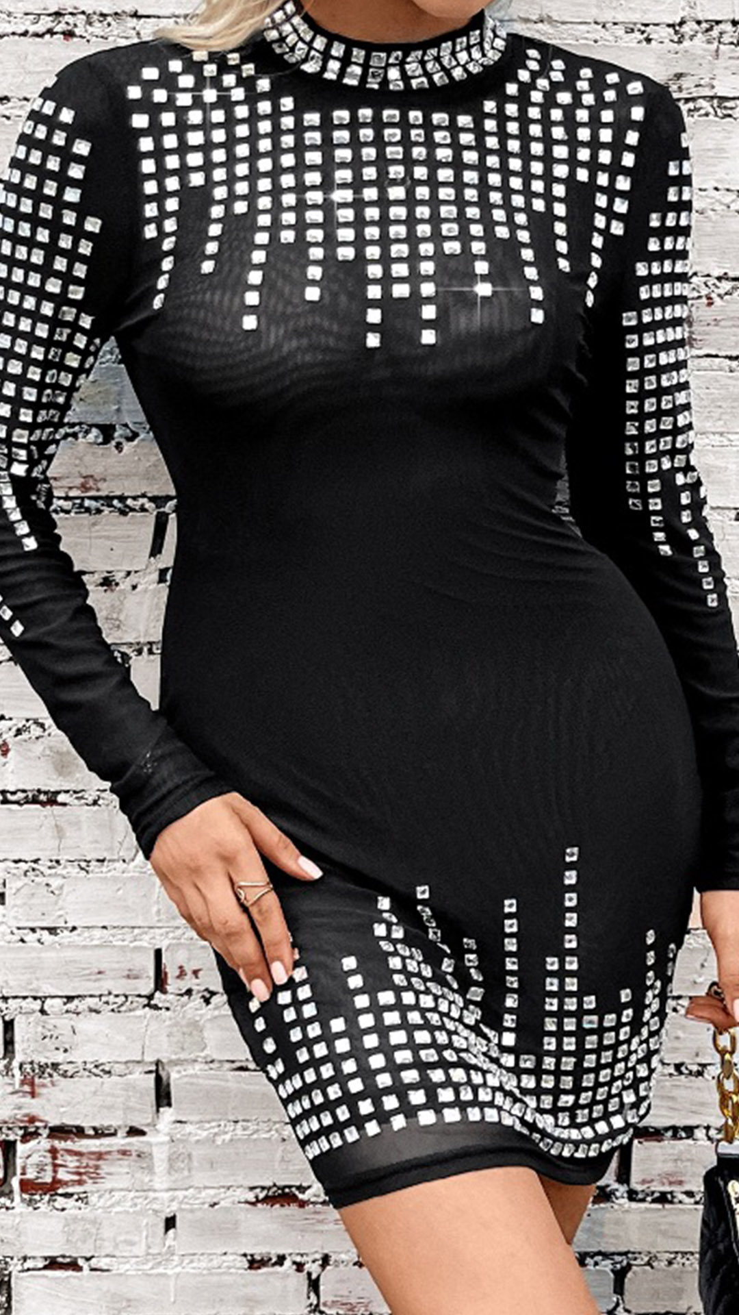 Fashion Rhinestone Mock Neck Long Sleeve Bodycon Dress